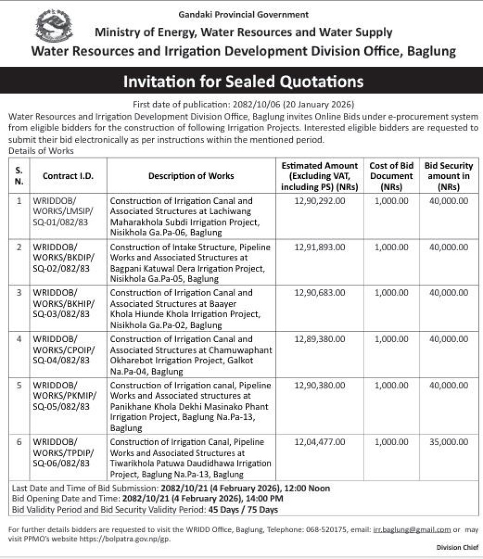 © सर्वाधिकार सुरक्षित जलश्रोत तथा सिंचाई विकास डिभिजन कार्यालय, बागलुङ